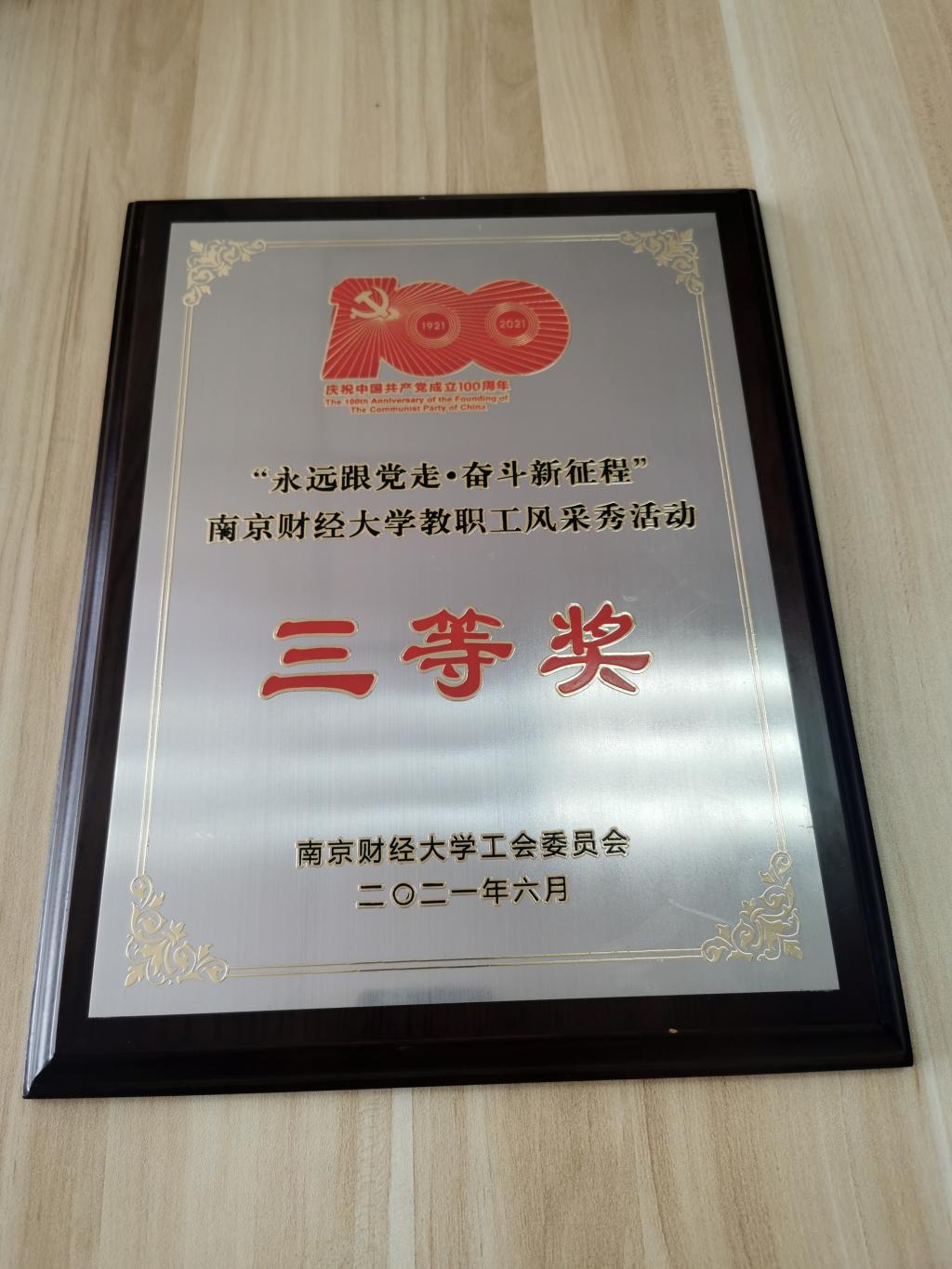 2021年6月23日下午,南京财经大学校工会举办的“永远跟党走•奋斗新征程”教职工风采活动秀成功落下帷幕,我院朗诵节目《有一首歌》喜获“三等奖”,参演老师为李博伟、曹志伟、段永杰、石艳艳、张勇丽、陶佳洁。