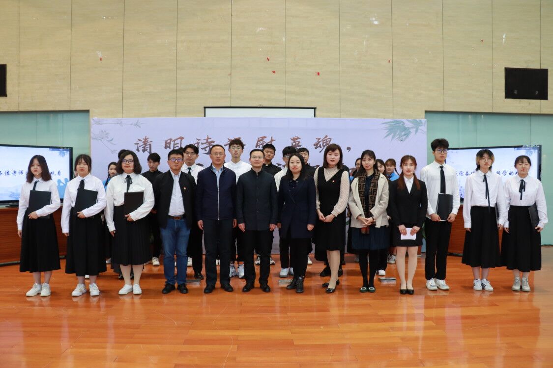 “今日在篱下,山花烂漫,春荣如是。临近清明雨纷纷,缅怀先烈忆忠魂。”新闻学院分团委书记李晞老师一首娓娓道来的《清明追忆》拉开了诗会的序幕,将现场师生带入了肃穆缅怀的情境中。接着,张棕翔同学声情并茂地朗读了《冷少农烈士家书》,轻轻表露这位早期隐蔽战线的英雄,面对家人误解却又无怨无悔的内心世界“母亲,我真的是不忠不孝,忘恩负义吗?我是把我的孝移去孝顺大多数痛苦的人类,忠实的去为他们努力。”陶佳洁和李博伟两位老师合作朗诵了陈觉和赵云霄革命伉俪在为人民解放事业献出生命时的遗书,真切表达了对爱人对女儿的真情与嘱托。马驭同学的演讲《缅怀永远不能忘却的伟人》和集体诗朗诵《毛泽东诗词三首》缅怀了党和人民共和国的伟大缔造者毛泽东主席,用铿锵有力的诗句让大家感受到伟大领袖的思想风范。秦曼科同学的主题演讲《传承先烈遗志,做新时代中国青年》与赵妮妮同学的朗诵《新时代的赞歌》将师生们的思绪从历史的深深怀思中带到了繁荣奋进的新时代。“有一首歌,鼓起理想的风帆,填平征途的沟壑……”伴随着最后一首诗朗诵《有一首歌》,现场气氛达到高潮,在全场师生共同演唱《没有共产党就没有新中国》的激昂旋律中,诗会圆满结束。