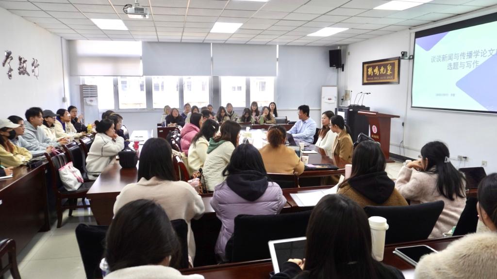 为进一步提升青年教师和研究生的论文选题与写作能力,12月8日下午,南京财经大学新闻学院在德正楼507会议室举办了思享汇第二期主题讲座。本期邀请到《新闻与写作》编辑部副主编、高级编辑李蕾老师莅临讲座,她分享的主题是“新闻与传播论文的选题与写作”。我院副院长(主持工作)刘泱育老师、新闻系主任曹志伟老师,学院青年老师和2023级全体研究生参加本次讲座。本场讲座由胡攀峰老师主持。